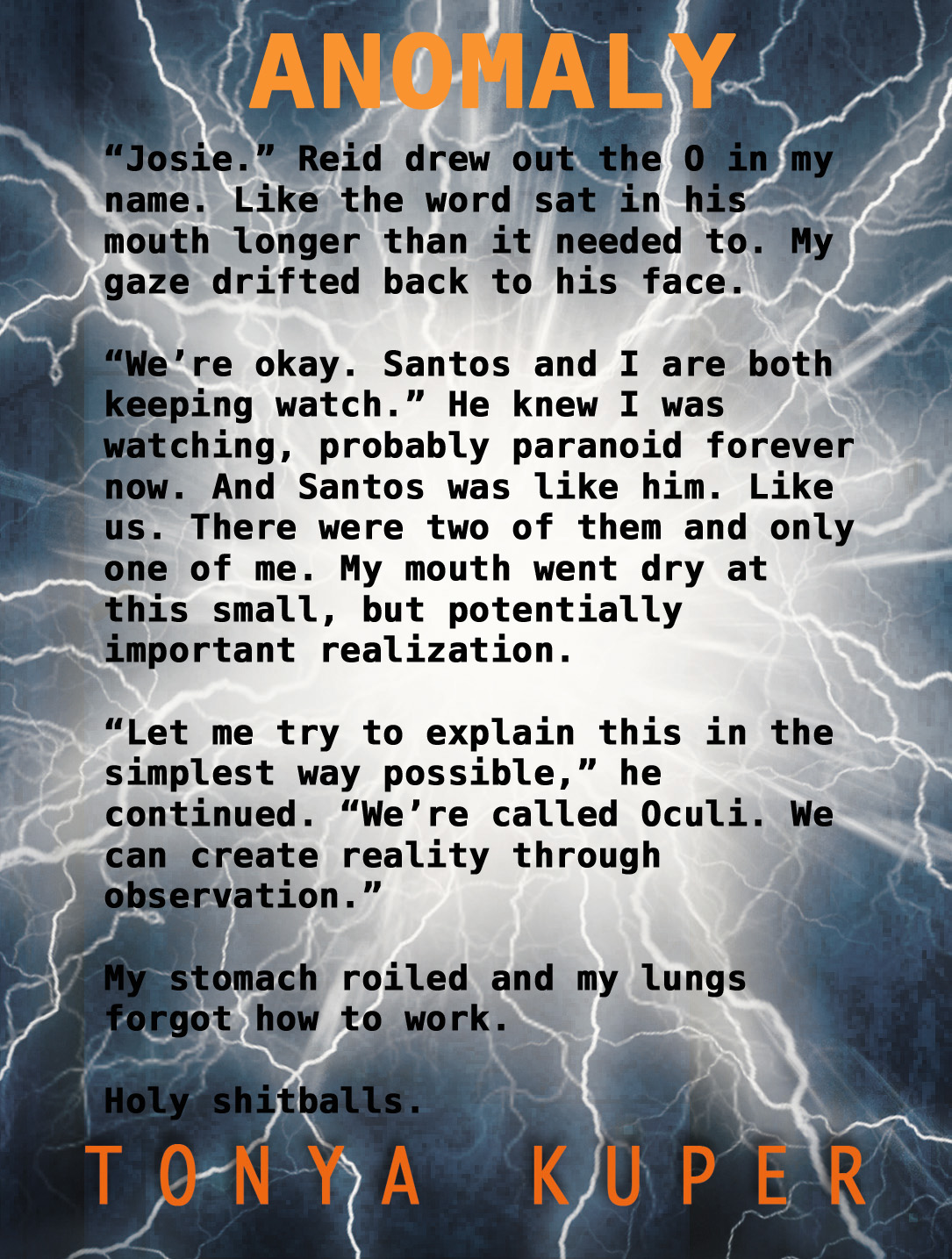 … great twists and the positive message that reality is ours to shape.” ~Kirkus Reviews on Anomaly